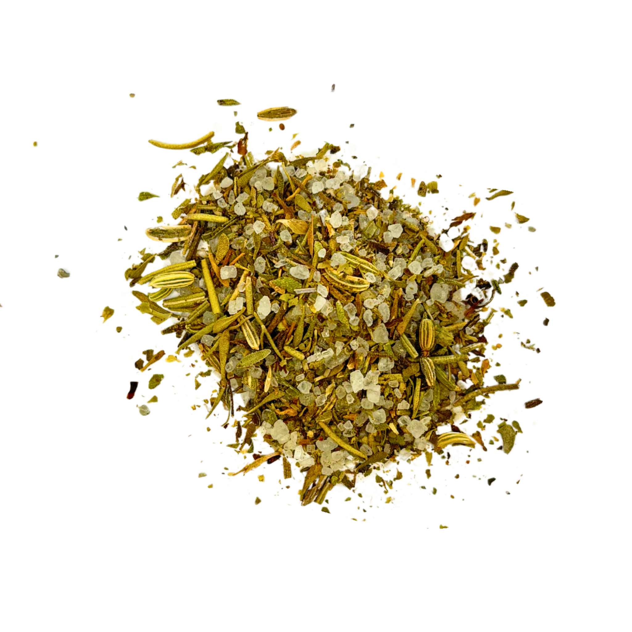 Sel de mer, Fenouil, Marjolaine, Romarin, Sarriette, Thym.